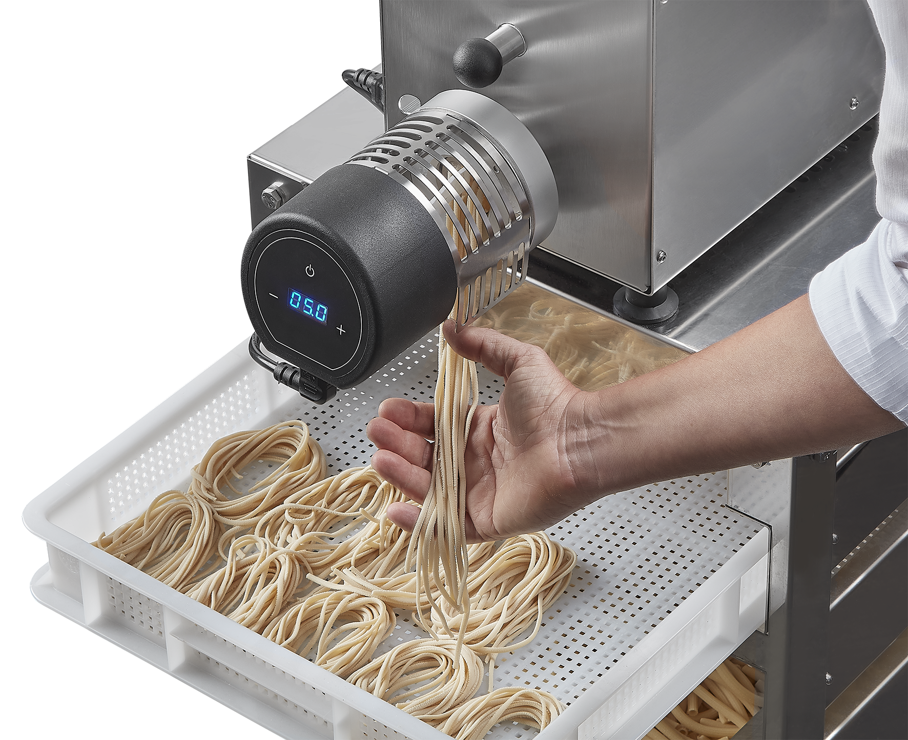 With consistent and dependable results, the Pro Cutters allow accurate and intuitive pasta cutting for long periods of time, allowing you to easily make large batches of extruded pasta of any length due to its high variance interval setting capabilities.