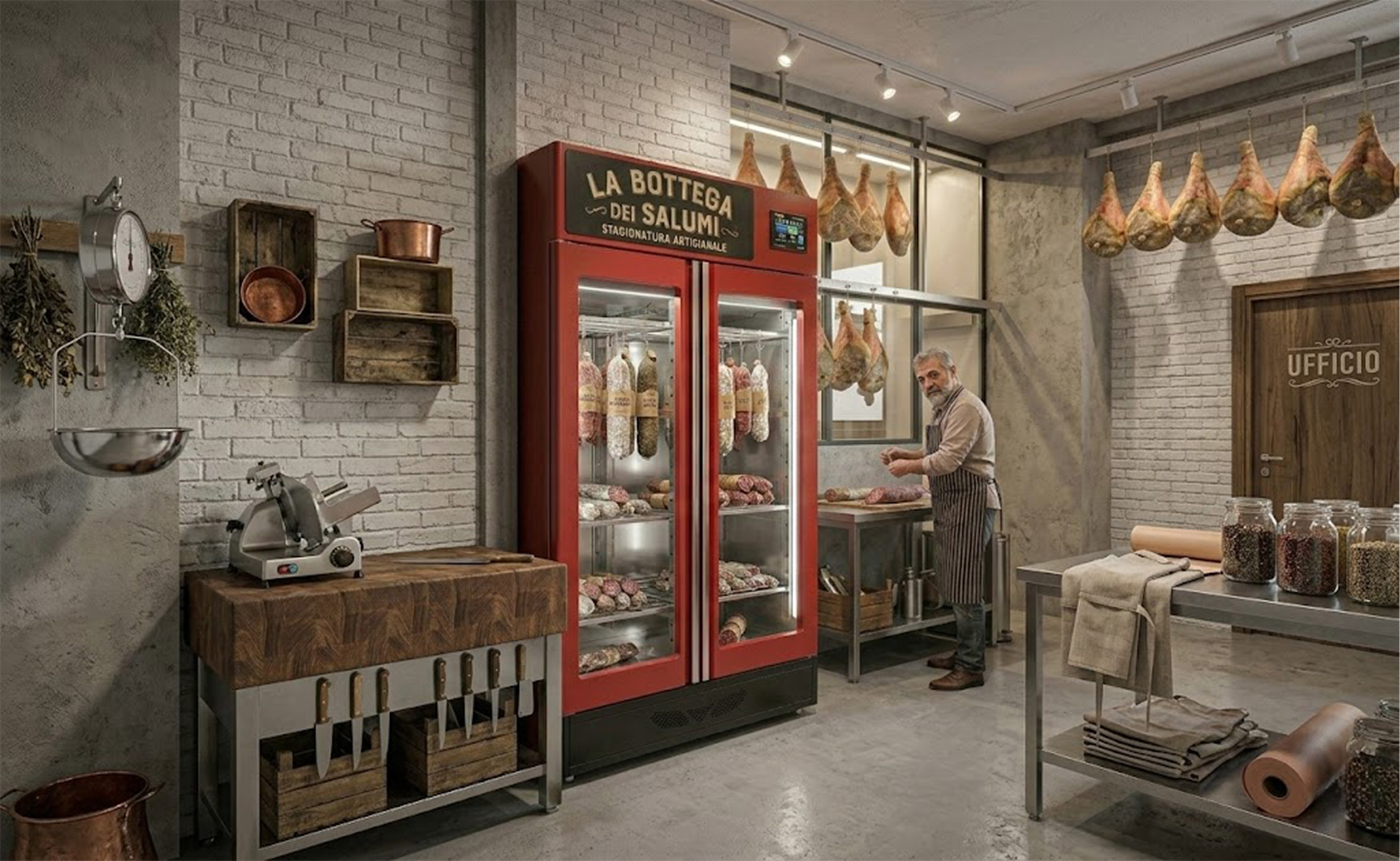ClimaTouch®, a management and control system, 6" colour touch-screen interface for automatic control of fermenting, drying, seasoning, salting, smoking/flavoring. It is equipped with a probe for pH measurement